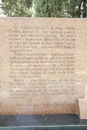 A special graveyard and monumnet just outside Gilgit to over 80 Chinese labourers who died in building the highway. |